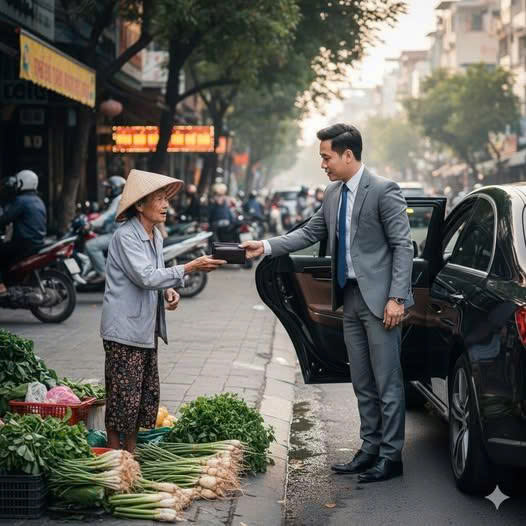 Cụ bà ăn mày đứng nép bên đám cưới chỉ xin một…